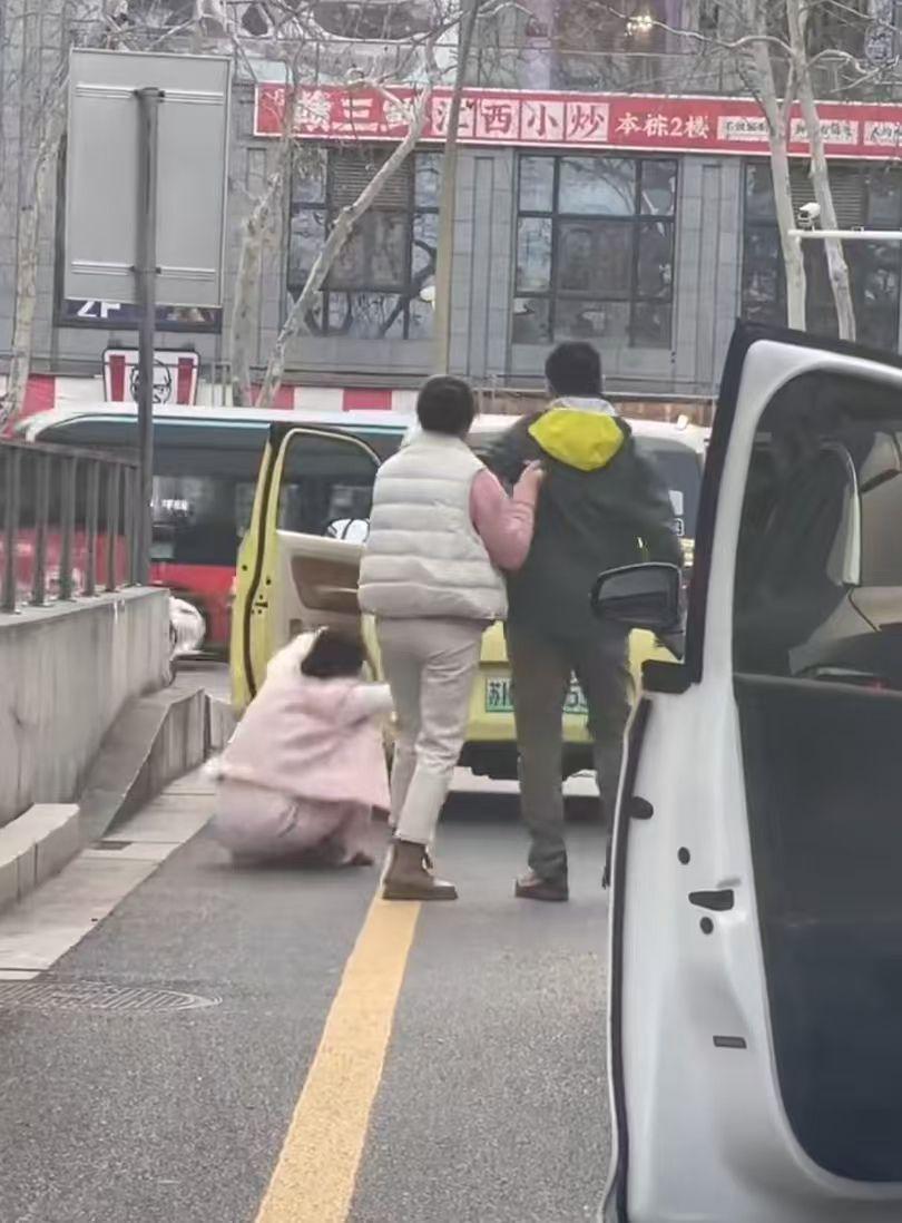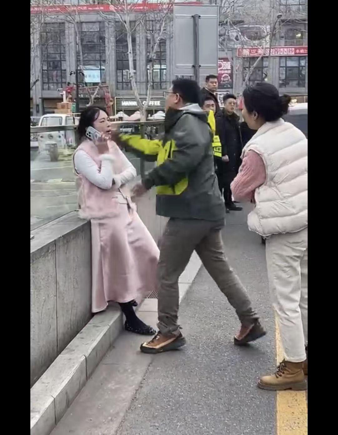 一开始还有人在女子和大哥之间挡着,后来发现女子这样的脾性后,直接不管了,大哥的妻子担心丈夫做出什么出格的举动,也上去拦在丈夫和女子之间。